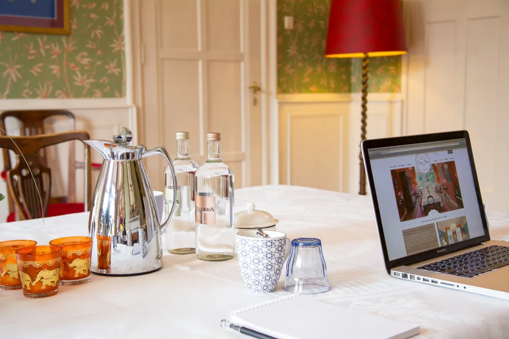 Tijdens de vergadering mineraalwater (bruisend & plat), koffie/thee, huisgemaakte koekjes en fruitschaal;